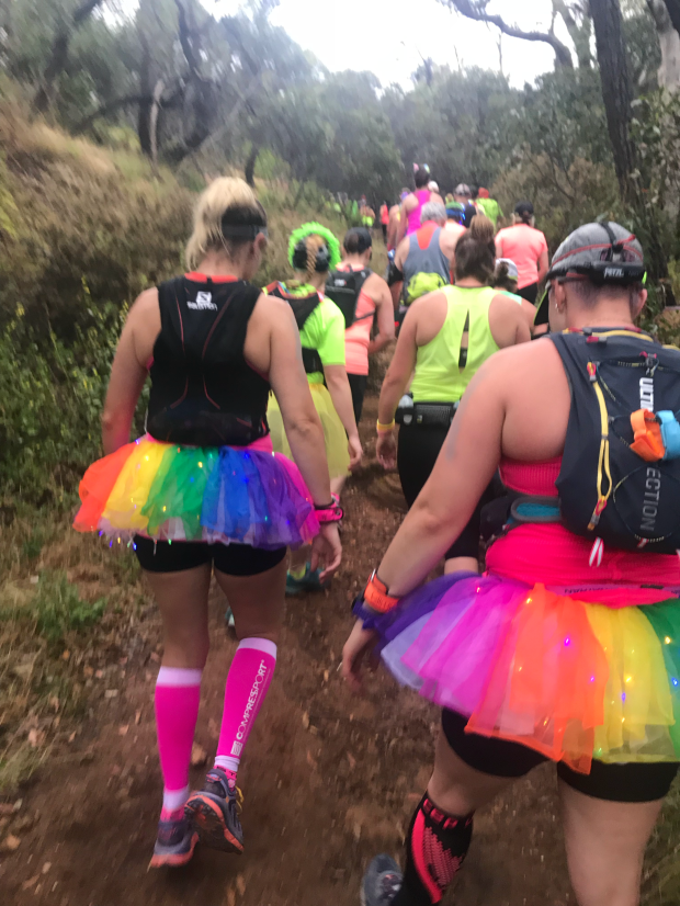 There are two waves, a slower and a faster wave. It’s all organized so everyone gets in run in the dark whether you are super fast or having your first day out on the trails.