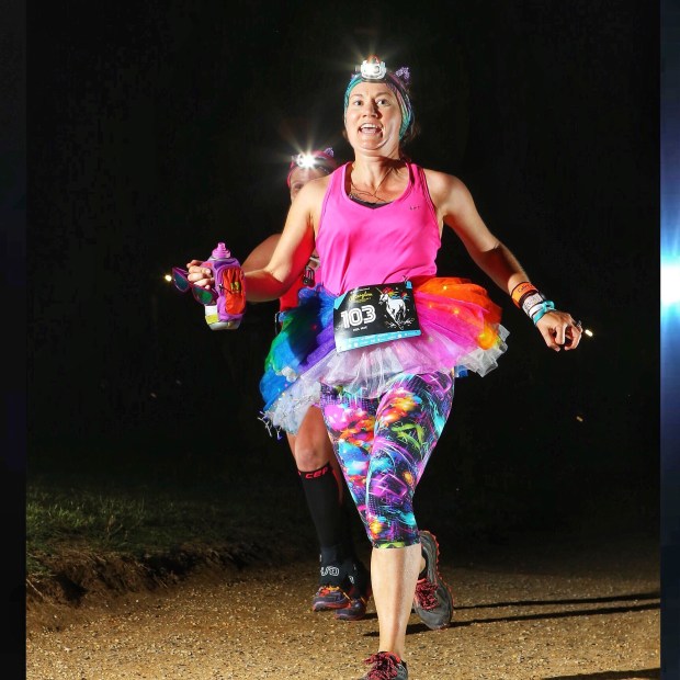 I quickly through on my tutu and head torch and jumped on the bus with my equally fluro running buddies.