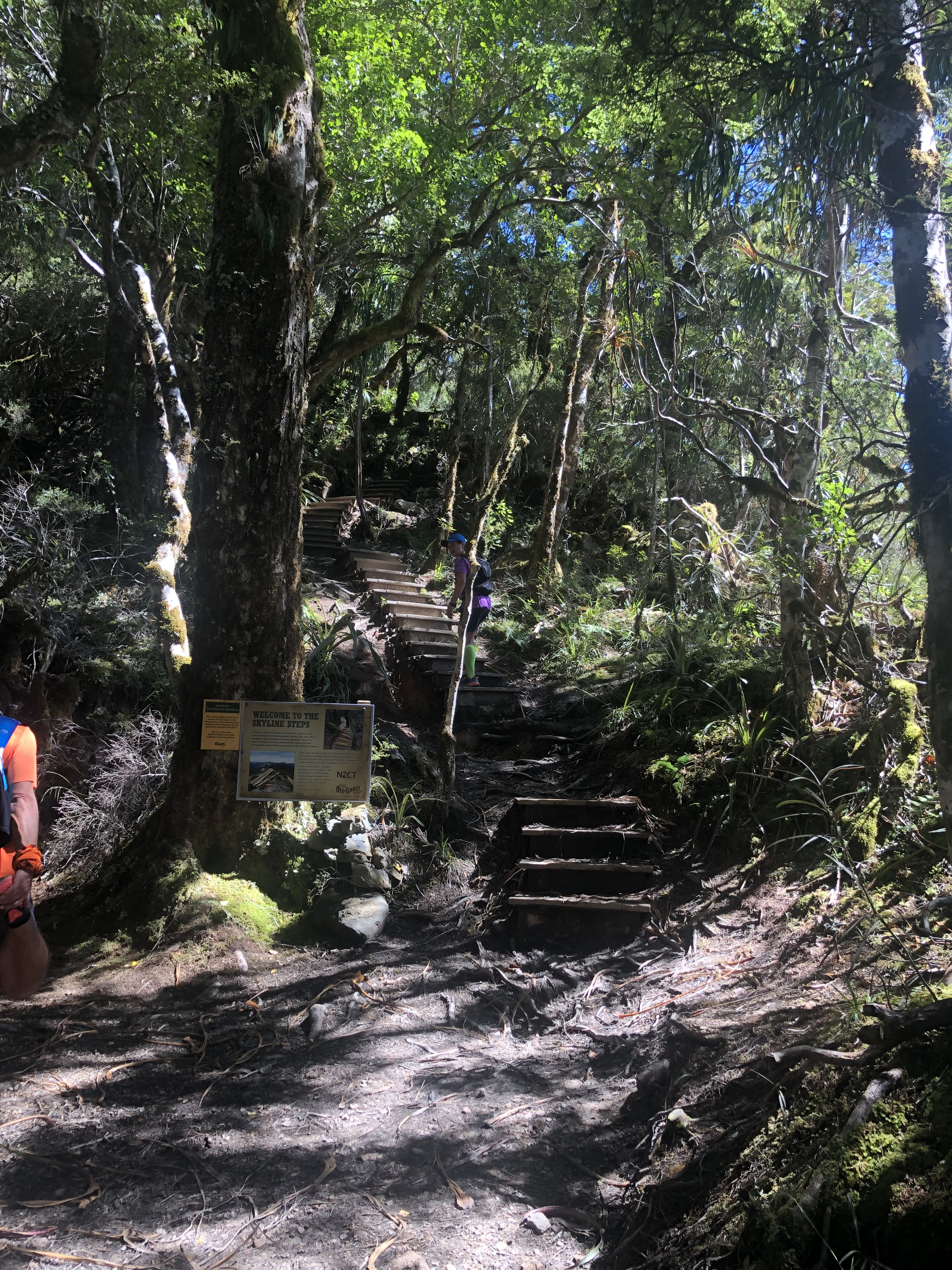 As the sun rose, the trail revealed itself. Lush green, fern rich forest, so dense in places you could only see the 30cm trail in front of you and nothing but trees to either side.