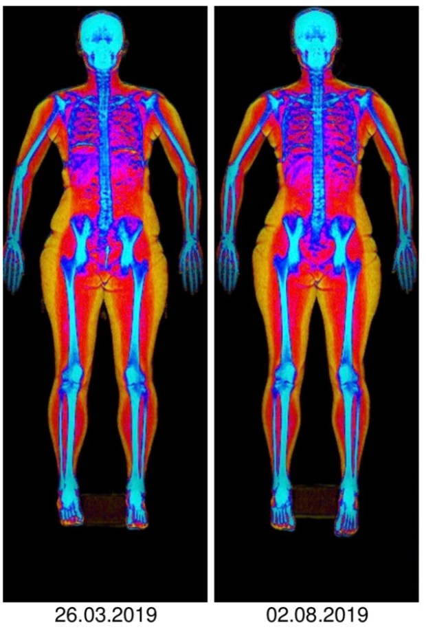 What is though is a 1kg drop in body fat on a DEXA scan including a 20% drop in that nasty between your organs visceral fat. You can’t tell from the picture though.