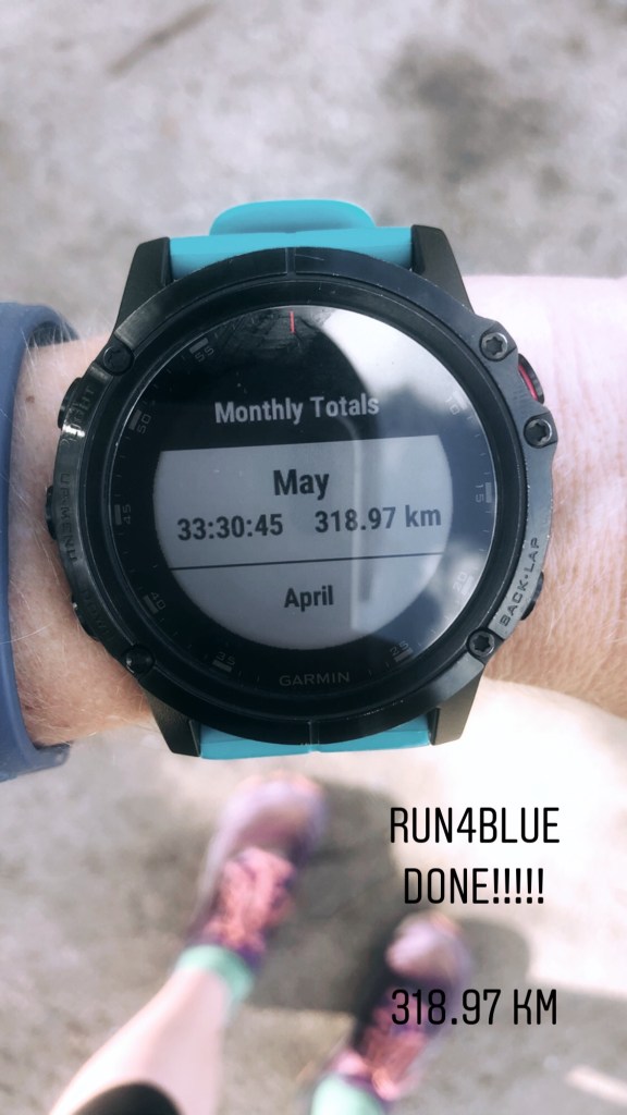Of course the month started off on the first of May. I rummaged through my box full of charity pins and broaches and affixed a Blue Ribbon Foundation ribbon to my Altra running shoes. It would stay there the entire month. I ran 11km on that first day, running past my local police station, currently closed due to the COVID-19.