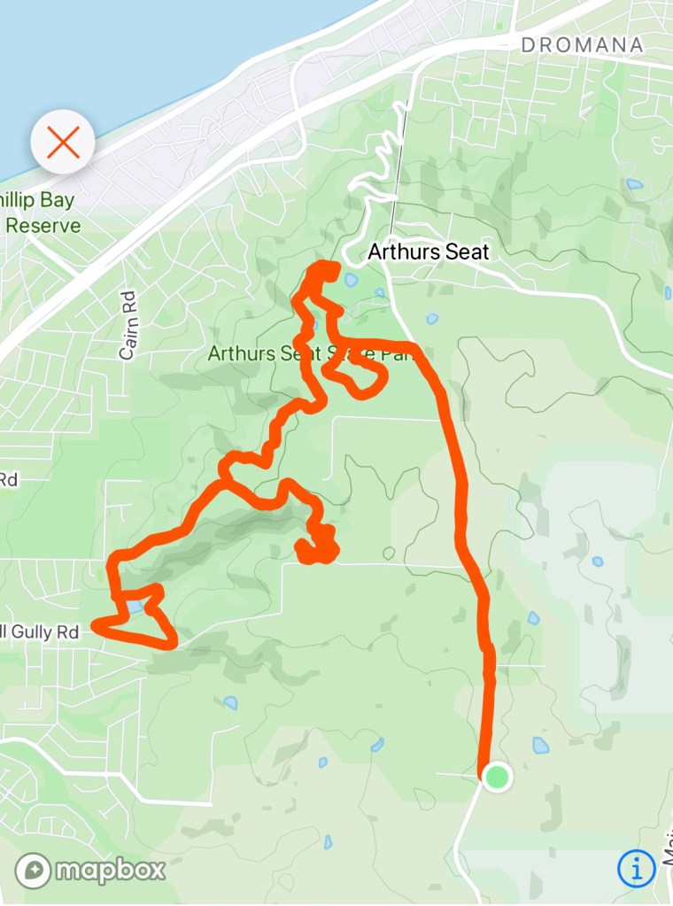 The first few kilometres ran along the side of the road on a narrow goat track into the Seawinds Gardens and down into Arthurs Seat State Park. As we shuffled along, I kept reminding myself why I was doing this run. “It’s a training run, practice running the hills”. I shuffled up and down, as my quads burned, there was no hurry.