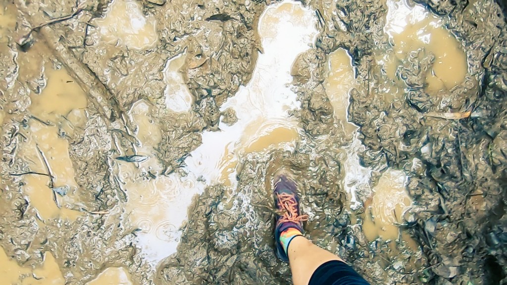 What comes up must come down, so once you reach the summit there is an uncomfortable down hill that takes you into the Tanglefoot. This year, with the trails closed and no races allowed in 2020, posed more of a trip hazard than previous years and the recent rain didn’t help matters.