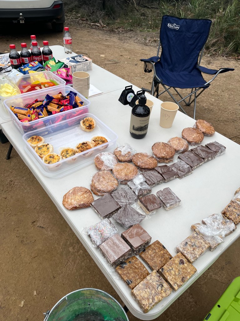 One thing I can say about the Peaks and Trails race is that it is a real family and community atmosphere. All the volunteers were smiling, taking pictures on their phones and offering encouragement and sometimes shots of whisky. The aid stations were manned by entire families and were filled with individually wrapped homemade slices and quiches from the local kindergarten and primary school mums. The one major road crossing was looked after by the only policeman in town and the live tracking meant that people spoke to you by name when you arrived to re-fill your bottles and your heart.