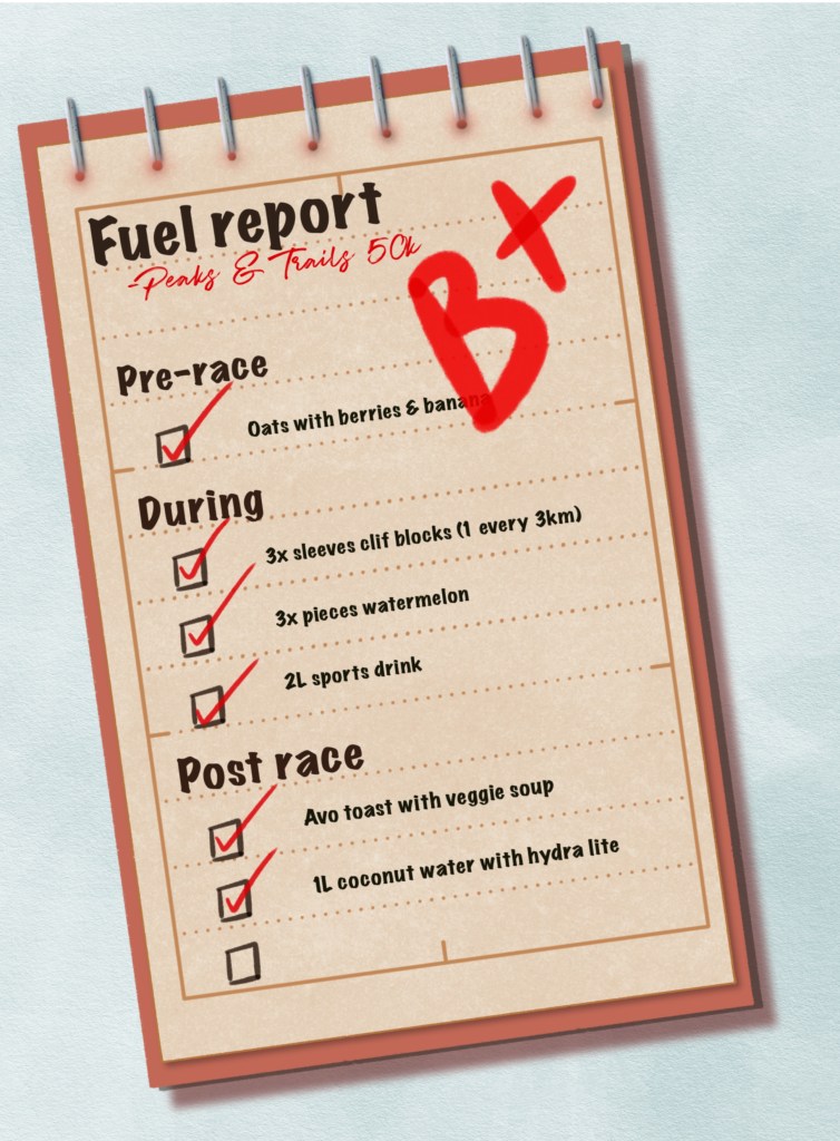There were only two goals going into the Peaks and Trails 50k. Don’t race and fuel. That was it, with the added bonus of an opportunity to test out all the gear ahead of my a race. The 50k was a pit stop on the training plan enroute to the Cairns to Port Douglas Ultramarathon on September 3rd. The goal was survival and recovery.