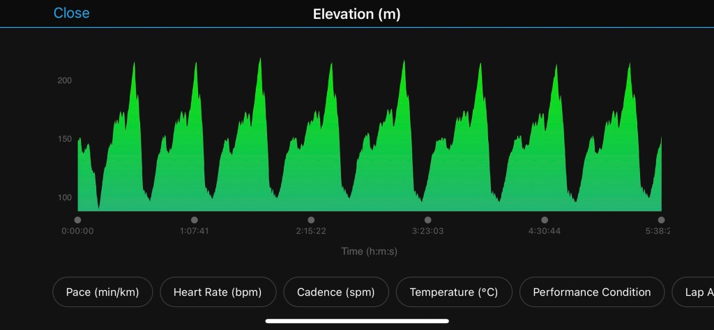 Training wise, I bested the last time I ran this looped marathon back on NYE 2017 by about 30 minutes. The extra bit to make it 42.2 was also different then and a lot flatter so I’m taking it all as a bit win.
