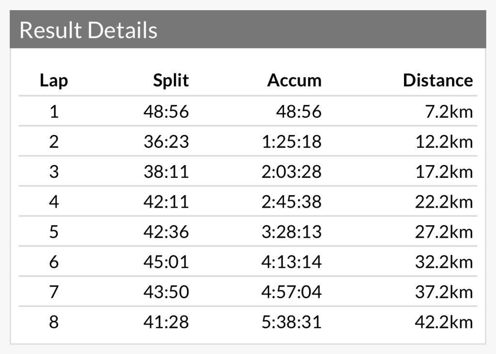 I counted each lap on my instagram story because 1. I have a history of loosing track and 2. No one at the start/finish line had any idea what was going on.