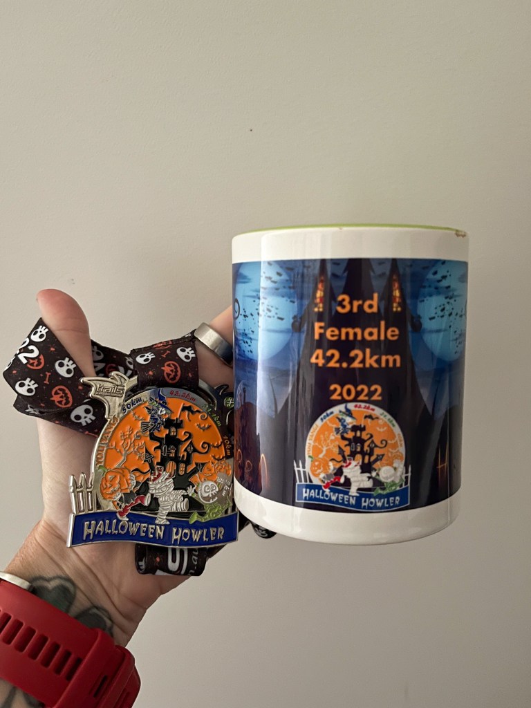 Chatting with a few people afterwards, I thought, I’m going to see if I was in the top 10 ladies (knowing full well I was because less than 10 started). Turned out, I was actually the third female and came home with a little mug trophy, buff and sports beer.