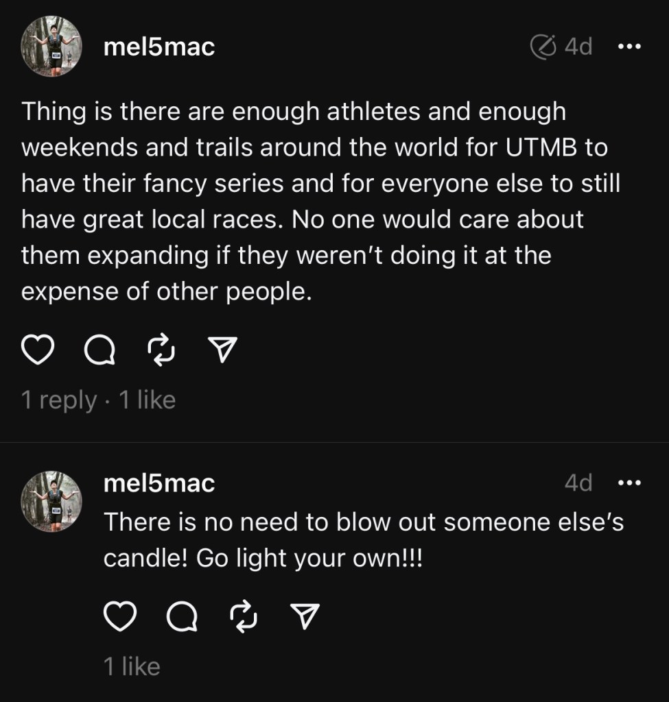 This November is the last build month before Ultra Trail Kosciousko in December. I’m going back to complete the course I originally set out to do last year before the unseasonable snow got in the way. I’d love to turn around and protest and boycott UTMB after the stunt they pulled this month but unfortunately I’ve already paid and already committed to this years event. If I pulled out in protest the only one that would loose is me because they still get my entry fee and I would forfeit my accomodation (for me and my dogs at daycare) and entry fee. I look forward to boycotting them in the future though if they don’t improve their practices. Since I’ve started on this train, my two cents, growth and improvement is good, being a bully is not. There is a right and a wrong way to conduct yourself in this space and I don’t believe UTMB is doing it the right way.