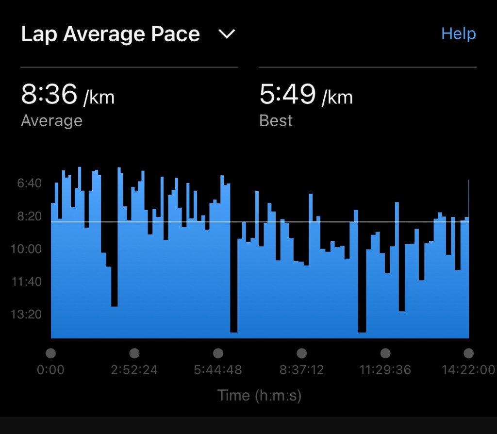 It looks like someone said to me at the half way point, ok you can stop aiming for 7min k’s and focus on 10 min k’s now!