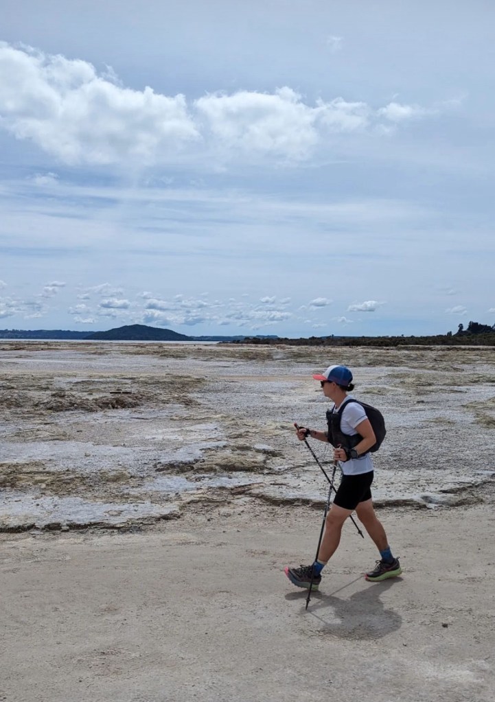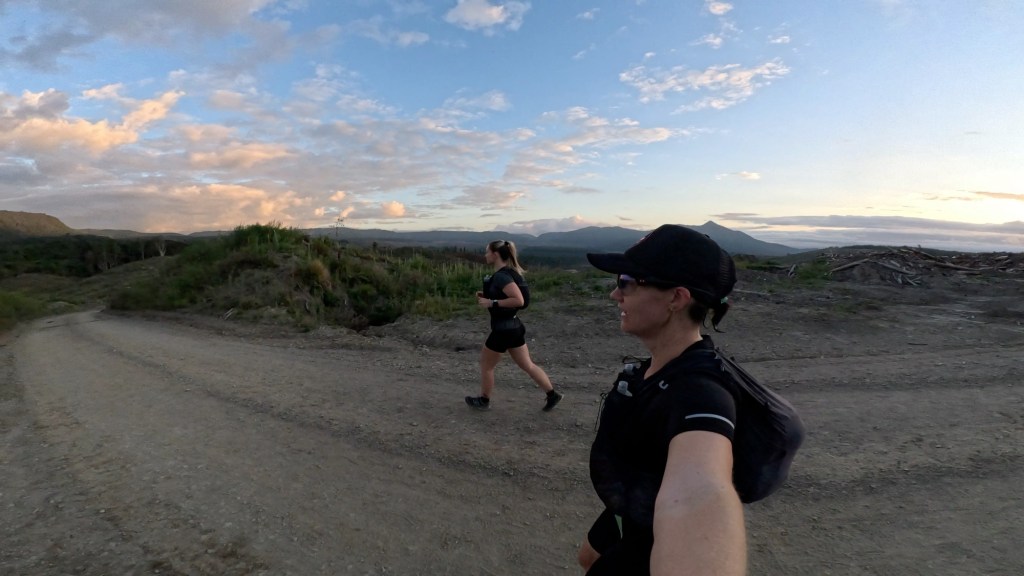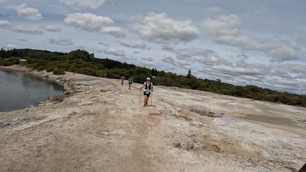 I came into Blue Lake to find Fitz ready to walk the last 20k with me to the finish. I had messaged ahead to get me a hat and sunnies since I had stupidly put mine back the bag at Okataina when it got dark thinking I didn’t need them anymore.