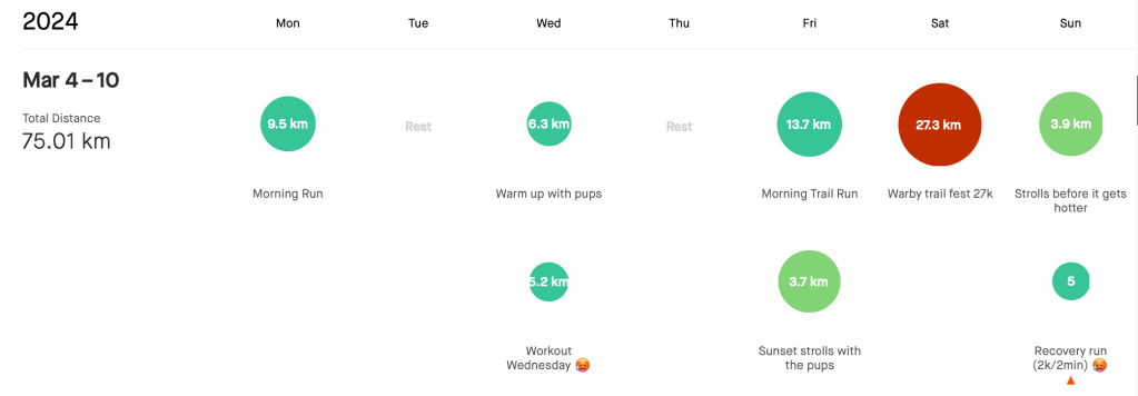 I started this week with a vague plan. I wanted to add in some strength work, which I’m easing back into after Tarawera, with the goal being one upper and one lower session during the week and two running workouts, one ‘intensity’ and one ‘endurance’. I figured the rest could just be ‘easy’.