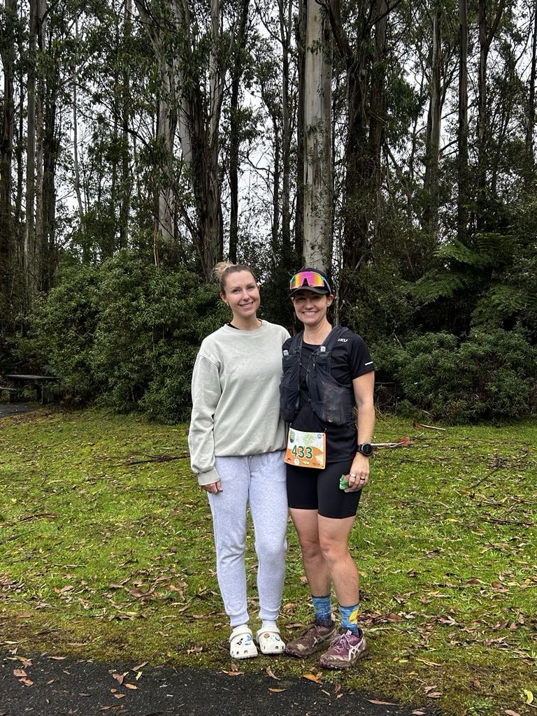 Special thanks to Megs and Ben for sticking around for my slow and muddy butt to finish and being brave enough to have a photo with me dressed all in none trail running friendly colours!
