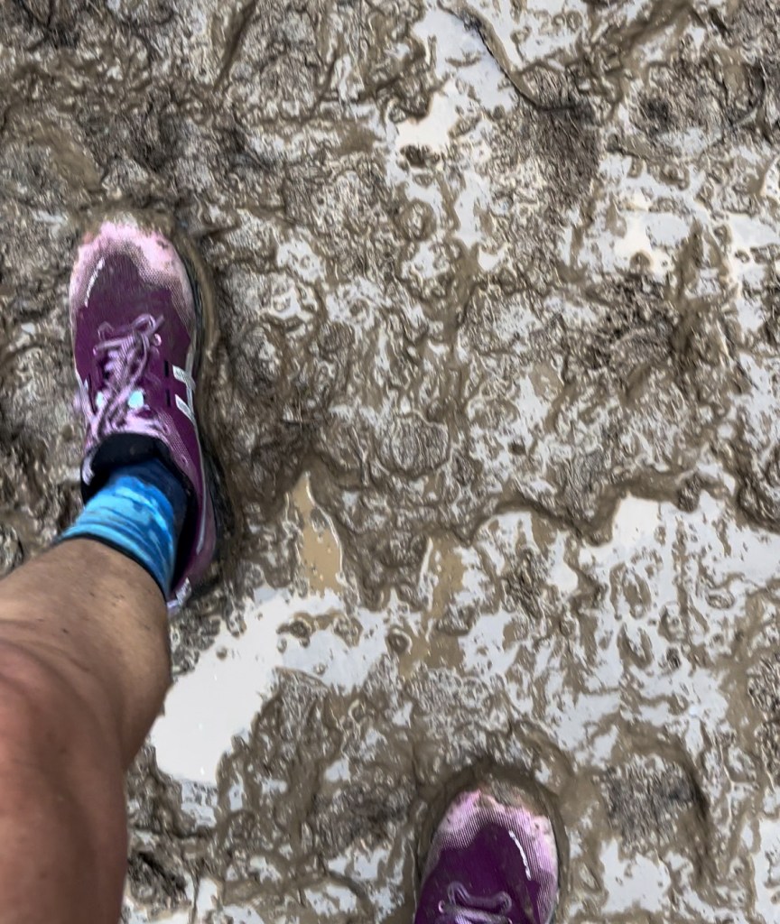 Slippery, wet, peanut butter mud. The kind of mud that cakes like 90’s platforms on the bottom of your shoes and offers little comfort in your ability to actually land each step.