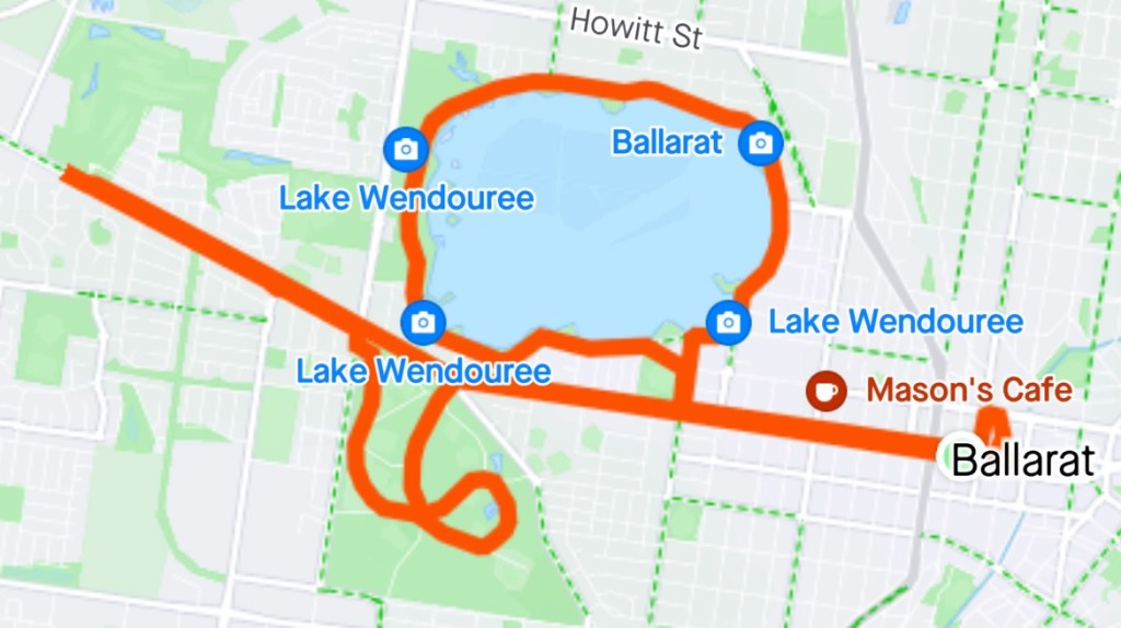 At the end of the Avenue, we did a u turn and headed back towards town before turning to do a loop of Lake Wendouree, another popular running loop I had never done before.