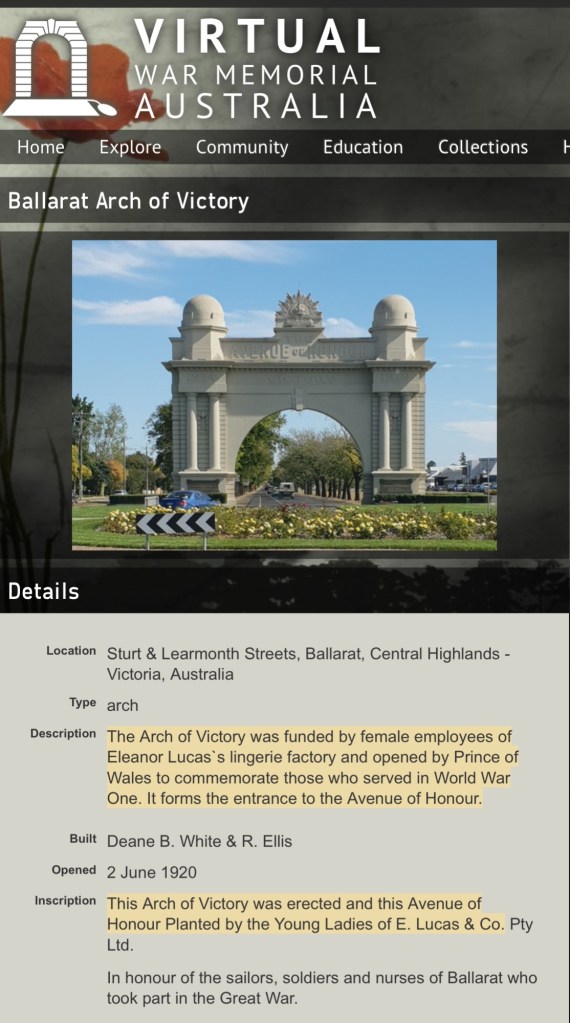 After the park, we turned left back out onto the Main Street, under the Arch of Victory memorial and down the Avenue of Honour.