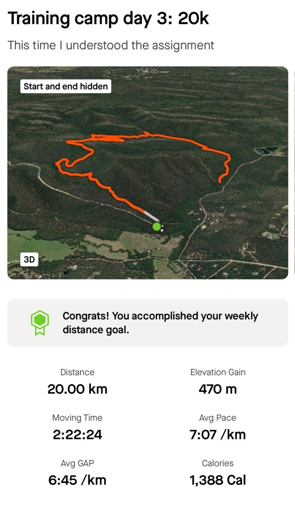 I created by first camp in 2022 and centred it around the Peaks and Trails race as my 50k. It was meant to be a training stimulus for the Cairns to Port Douglas race a few months later but in reality the courses couldn’t be more different.