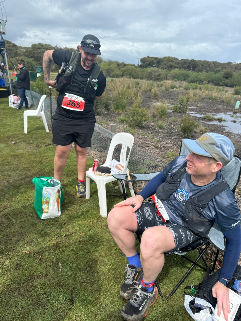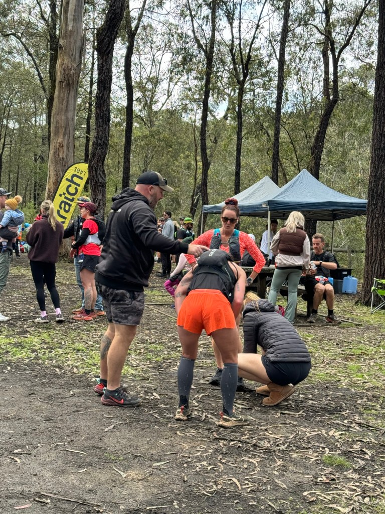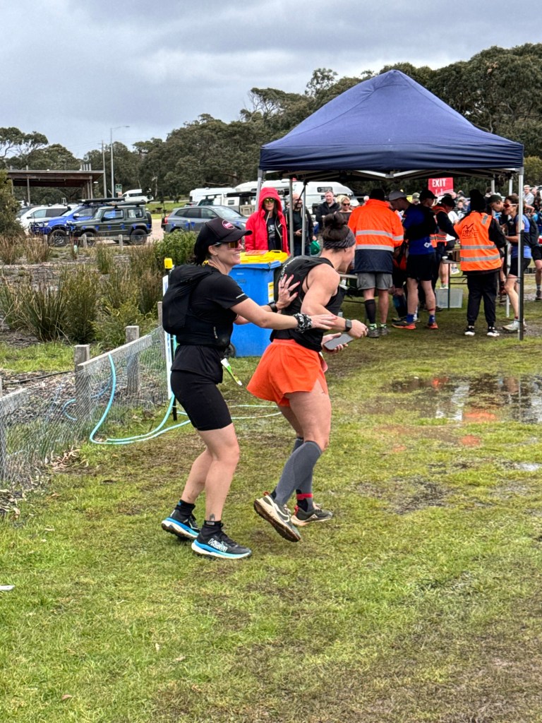 We hoofed it into the Moggs Creek checkpoint, which was a bit of an effort for Megan after her 50k Pb, to send our leg 4 runner Alicia off on her leg.