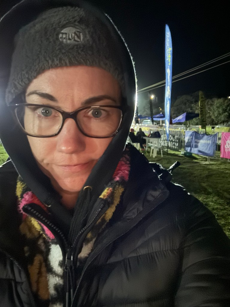 I waited around in the chaos of the finish line, waiting for my mate to finish the 50k and hubby to come through the half way point for this race. All whilst trying to find food and get out of my cold and wet running gear.
