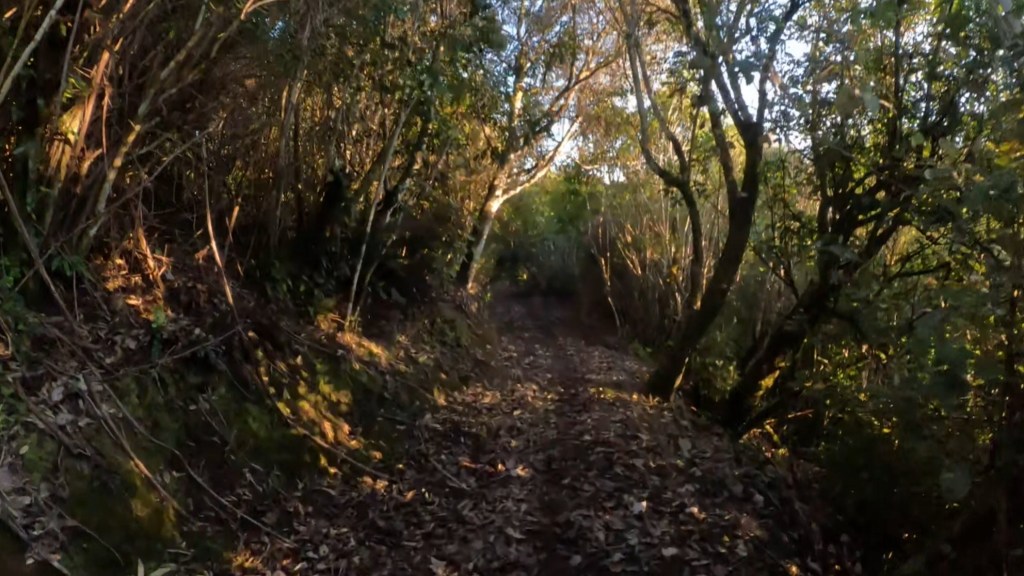 With only a few k’s to go, the forest starting getting dark. I could see the sun still, but under the trees it was starting to get a little risqué for me.