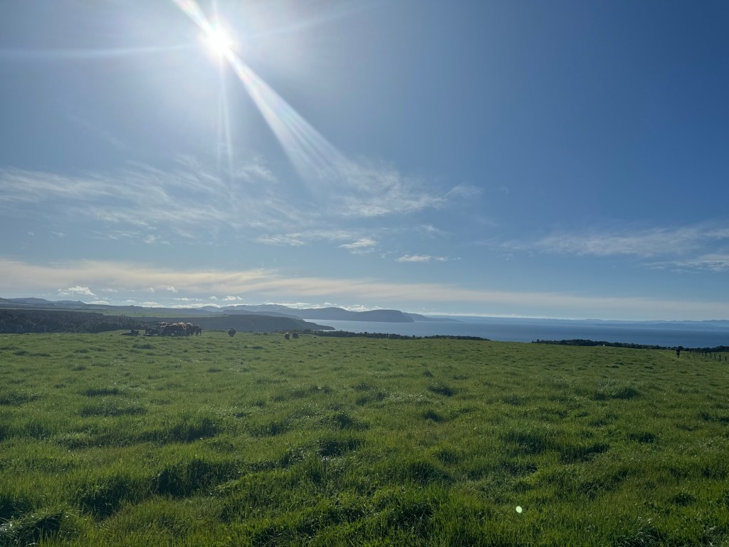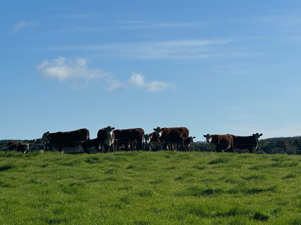 When we came out of the bush, we headed through a private property, a cattle and sheep farm, to connect through to a road section which would take us to the airstrip at the half way point.