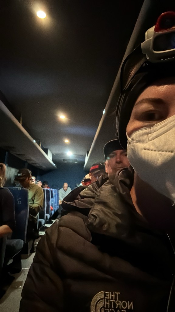 Everyone had their names ticked off the list and then we waited on the bus for about 10 minutes because they didn’t want us waiting in the cold at the start for no reason.