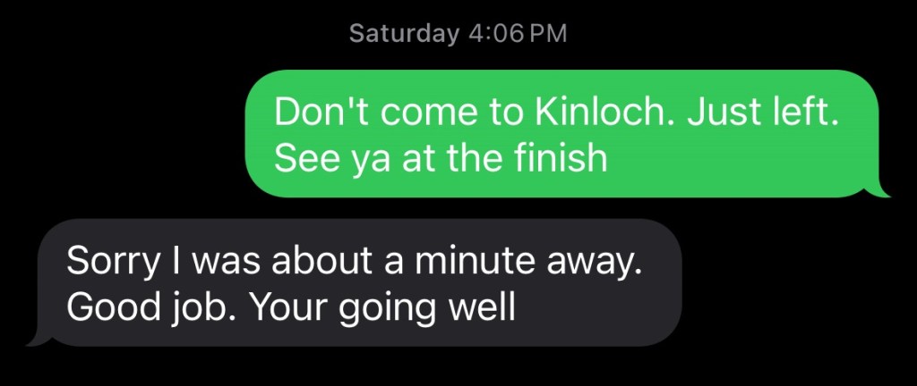I’d beaten the crew again. I was pretty happy with myself actually, even though it was probably more to do with the rudimentary tracking system than my speedy splits.