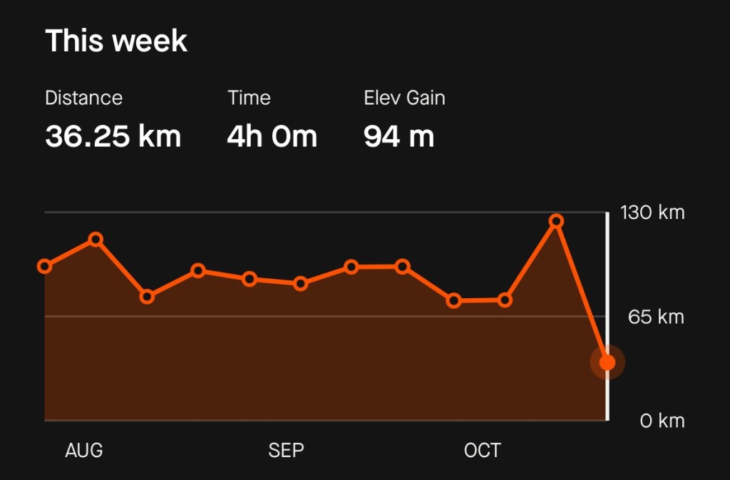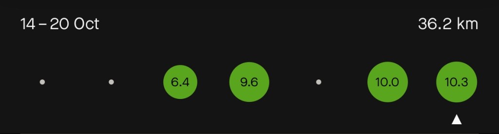 I’m not in a hurry to get back into structured training but I’ll bring in light weight training this week and increase the mileage a little bit.