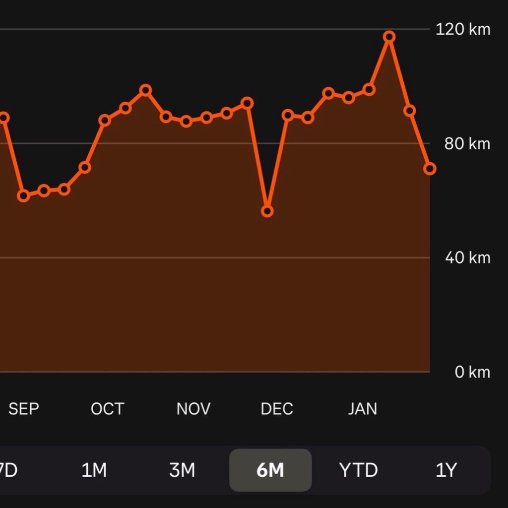 I expect the mileage will drop, the vert and strength work will increase and I’ll just have to deal with the anxiety that comes from watching my pretty Strava chart get less pretty.