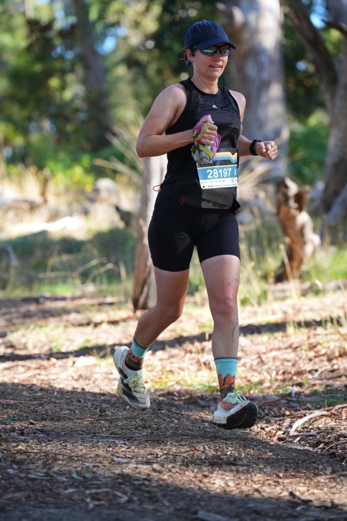 So I didn’t have a rubbish bag (so I ended with a sticky mess of wrappers in my pocket) and on the last road section before the final loop at around 17km, I had to stop and walk to find the last gel in my belt. I was spinning it around, loosing the straps and digging around trying to work out how to get it out. At most a 30 seconds to a minute was lost, but it was a frustration and stress I just didn’t need!